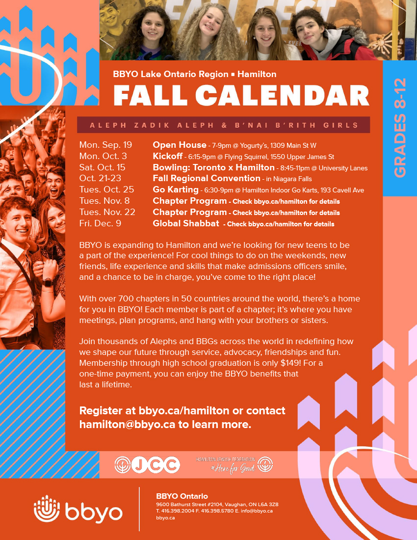 BBYO Lake Ontario Region | Hamilton | Fall Calendar